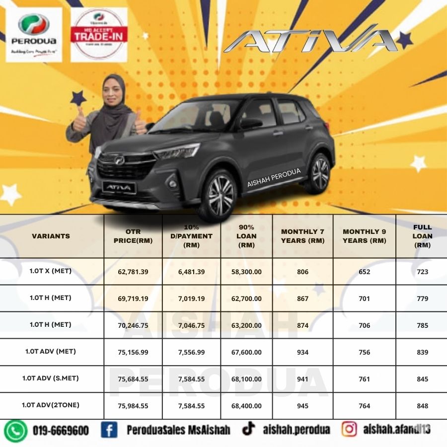 Hai! Nama saya Aishah, Sales Advisor Perodua Klang yang sah. Berpengalaman lebih 9 tahun dalam bidang jualan kereta di Malaysia.